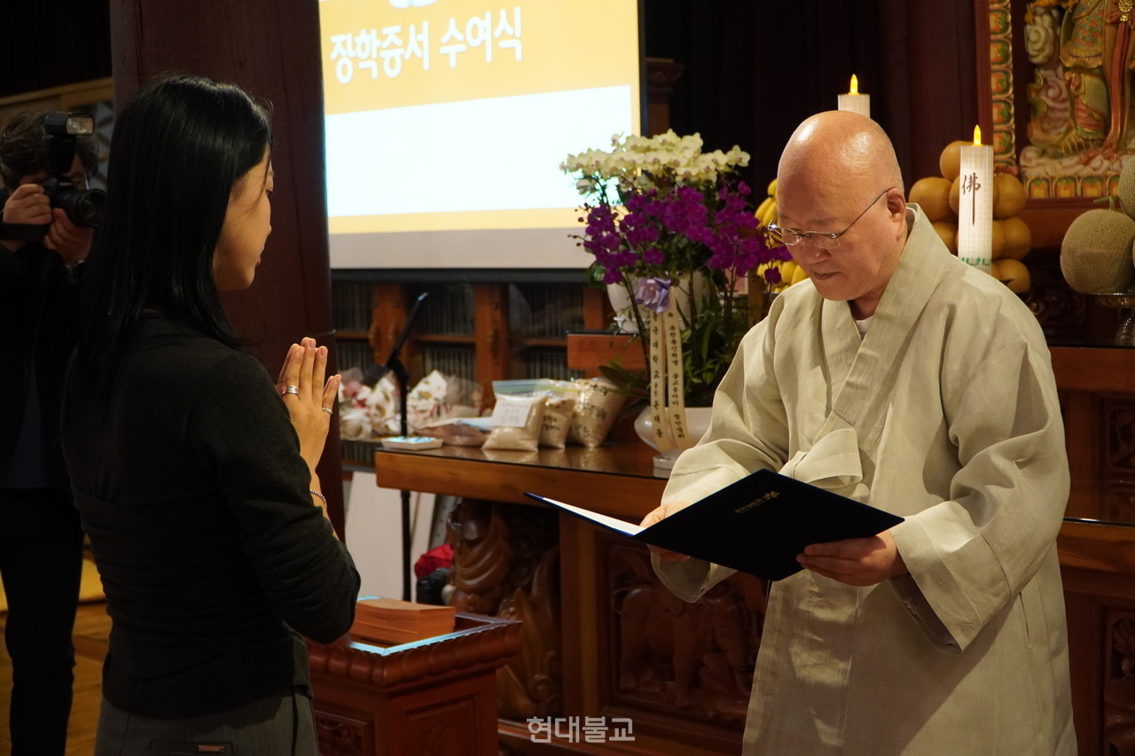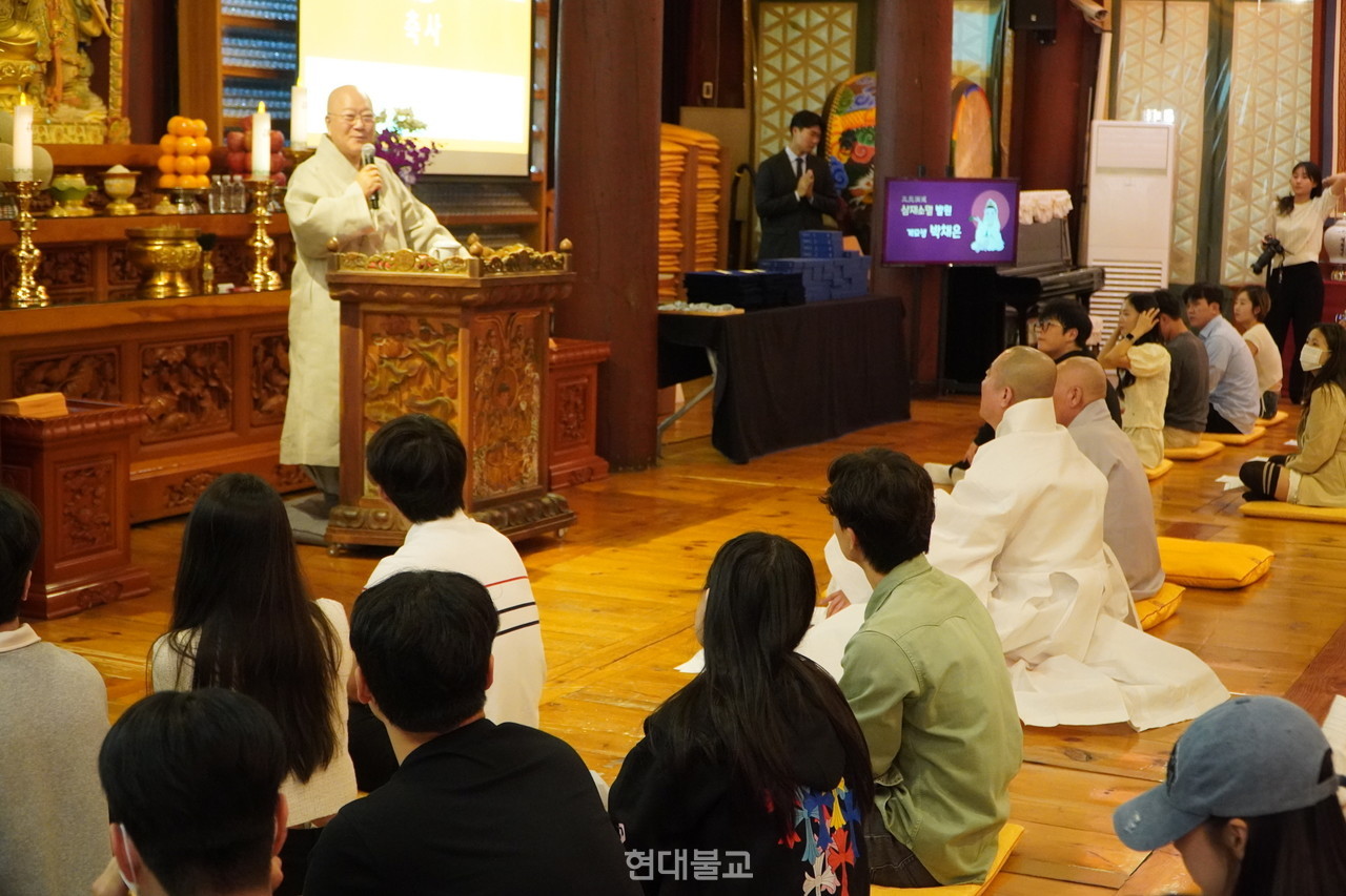 ù ºÏÇÑ Ãâ½Å ´ëÇлý ¿¬ÇÕ ºÒ±³µ¿¾Æ¸®ÀÎ ¸¸Å­ µ¿¾Æ¸® ¸íεµ Çб³¹ýÀÎ µ¿±¹´ë ÀÌ»çÀå µ·°ü ½º´ÔÀÌ Á÷Á¢ Áö¾ú´Ù. µ·°ü ½º´ÔÀº °Ý·Á»ç¿¡¼­ ¡°µ¶µµ¿¡ ´Ù³à¿Â ÀÌÈÄ µ¿¾Æ¸® À̸§¿¡ ´ëÇÑ ¿©·¯ ÀǰßÀÌ ÀÖ¾ú´Âµ¥ ¼öÇà°ú ÇàÁ¤, °øºÎ¿Í »îÀ» À̾îÁÙ ¡®ÀÌÆÇ»çÆÇ¡¯À̶ó´Â ºÒ±³¿ë¾î°¡ »ý°¢³µ°í ¾Õ¸Ó¸®¿¡ ¡®¹«(Ùí)¡¯ÀÚ¸¦ ºÙ¿´´Ù¡±¸ç ¡°¹«¾ð°¡¸¦ °áÀÇÇϰí ÇàÇÒ ¶§ ¡®ÀÌÆÇ»çÆÇ¡¯À̶ó°í ÇÏÁö ¾Ê´Â°¡. Çо÷ÀÌµç ¼öÇà, ½ÅÇàÀÌµç ³¡¾øÀÌ ´Þ·Á µé¾îº¸ÀÚ´Â Àǹ̸¦ ´ã¾Ò´Ù¡±°í ÀüÇß´Ù.